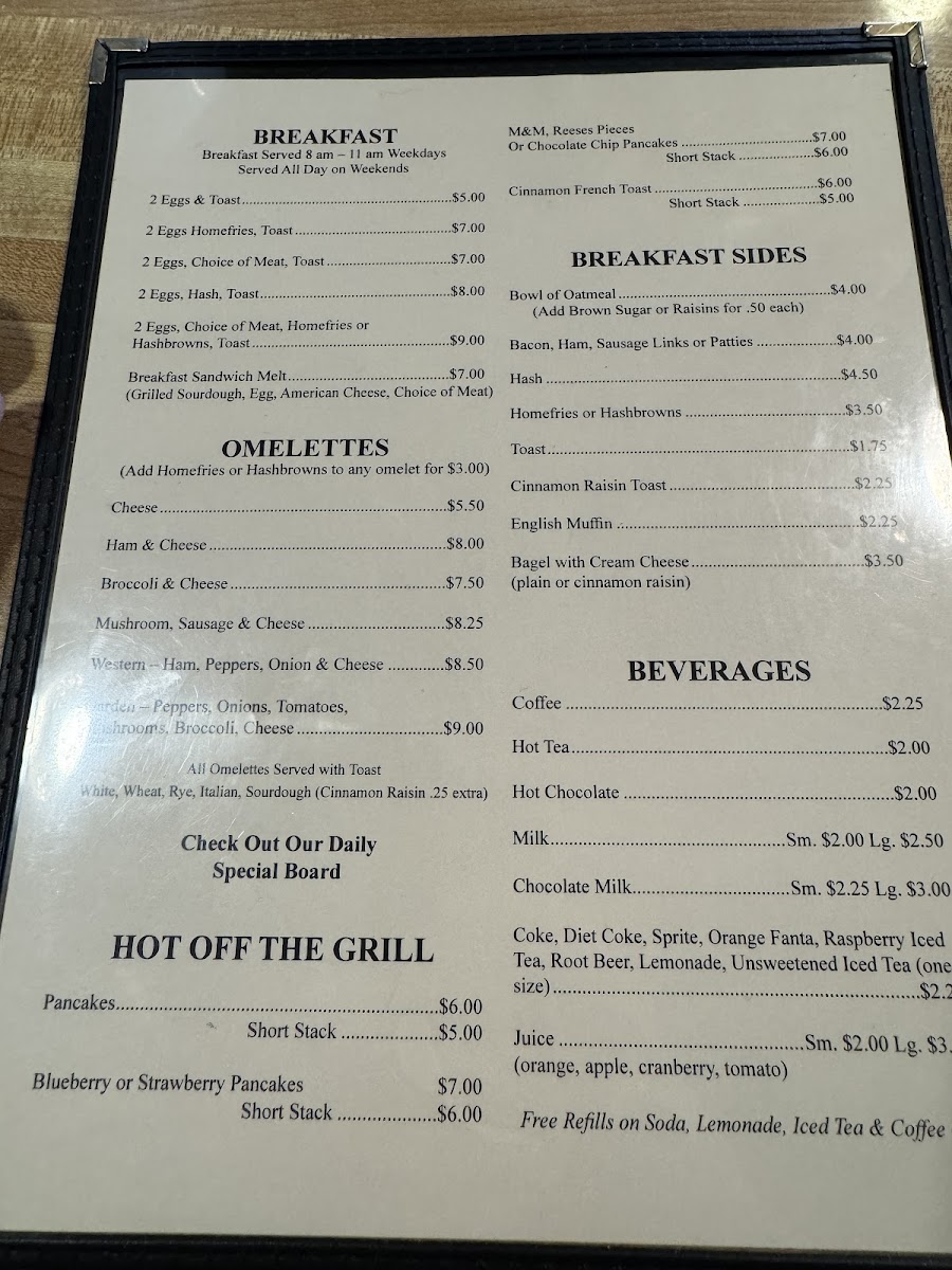 If you have a sweet tooth in the morning, the Hot Off The Grill section is sure to hit the spot. Indulge in a stack of golden Pancakes, or go for the Blueberry or Strawberry Pancakes for a fruity twist on a classic. The Short Stack is perfect for those looking for a lighter portion but still want to enjoy the comforting fluffiness of pancakes.